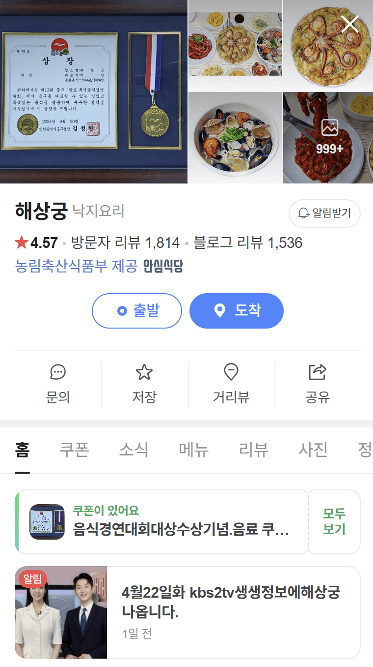 - 인천 향토특색음식 경연대회 대상 수상 기념 메뉴 할인: 행사 기간 중 낙지볶음, 낙지파전 할인 및 시식 행사 진행.