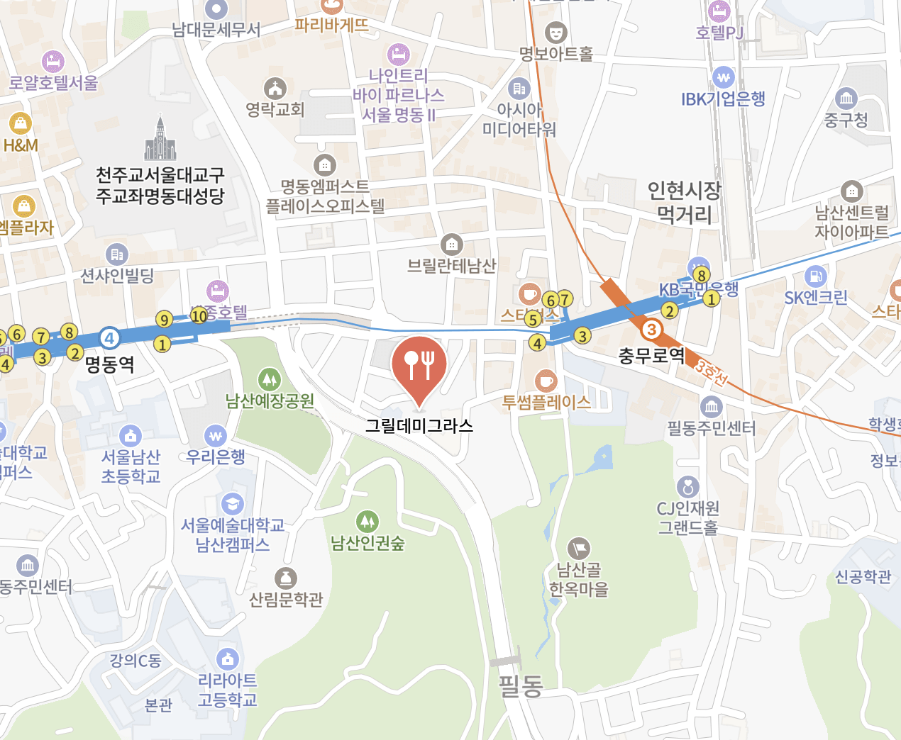 - 오시는 길: 충무로역 4번 출구에서 도보 3분, 충무파출소 골목 진입 후 오리엔스호텔 후문 이용.