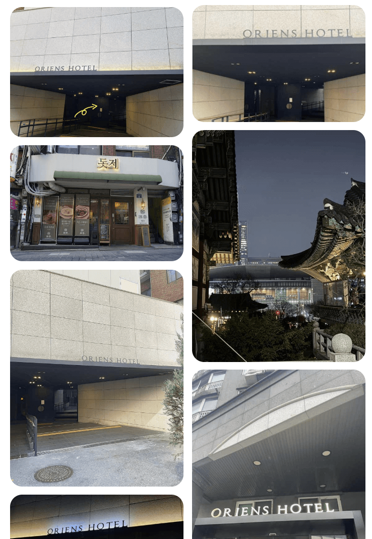 - 호텔 숙박: 오리엔스호텔 내 위치, 식사 후 숙박이나 휴식 가능.