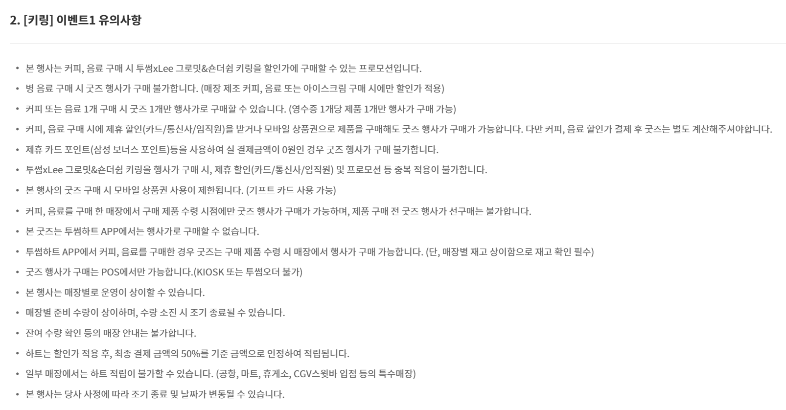 - 병음료, 케이크 단독 구매, 무료 쿠폰 사용 시에는 할인 적용이 불가합니다.
