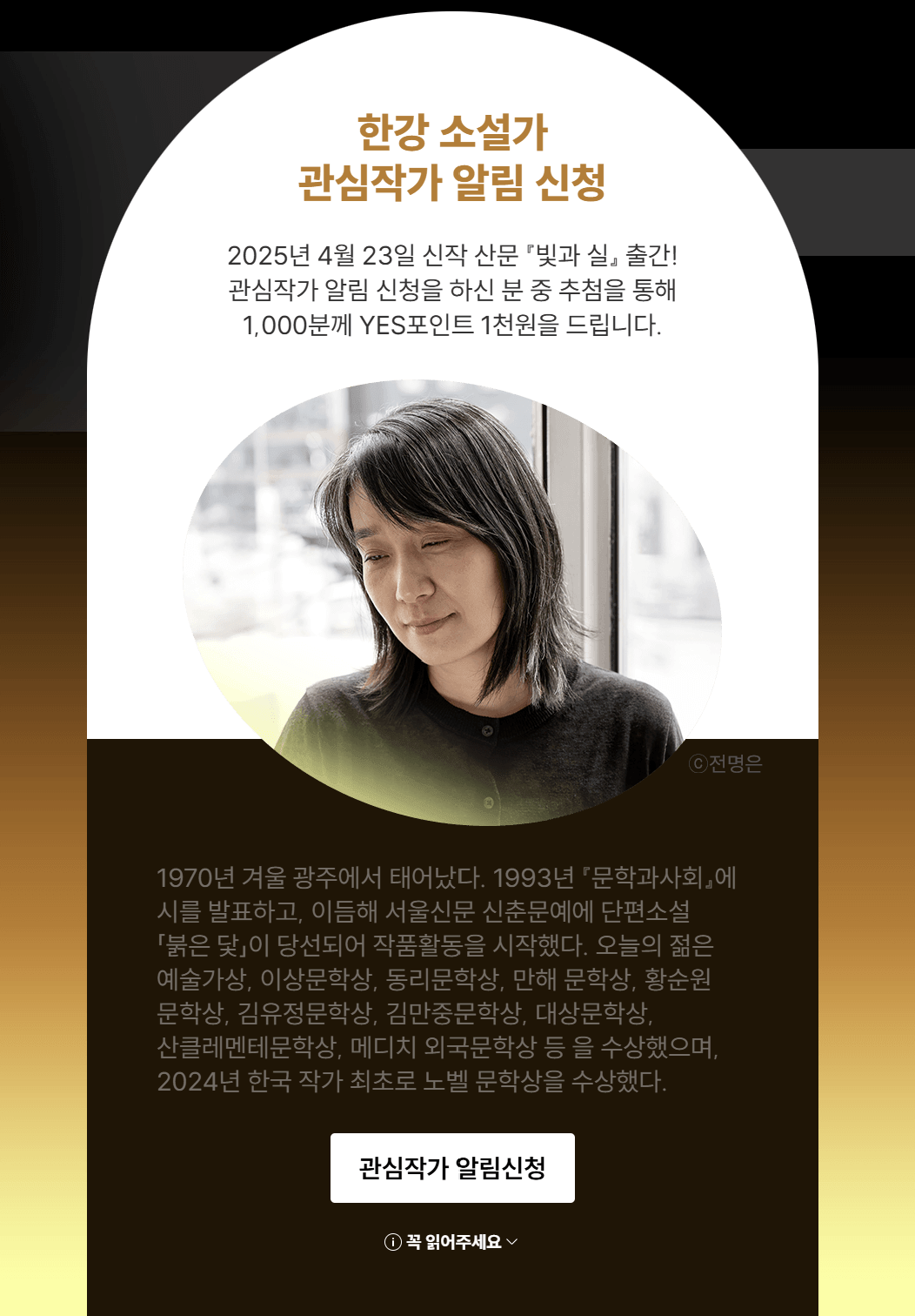 “한강 신작 산문집, 단 한 번의 기회! 예약 판매와 이벤트 혜택을 놓치지 마세요.”