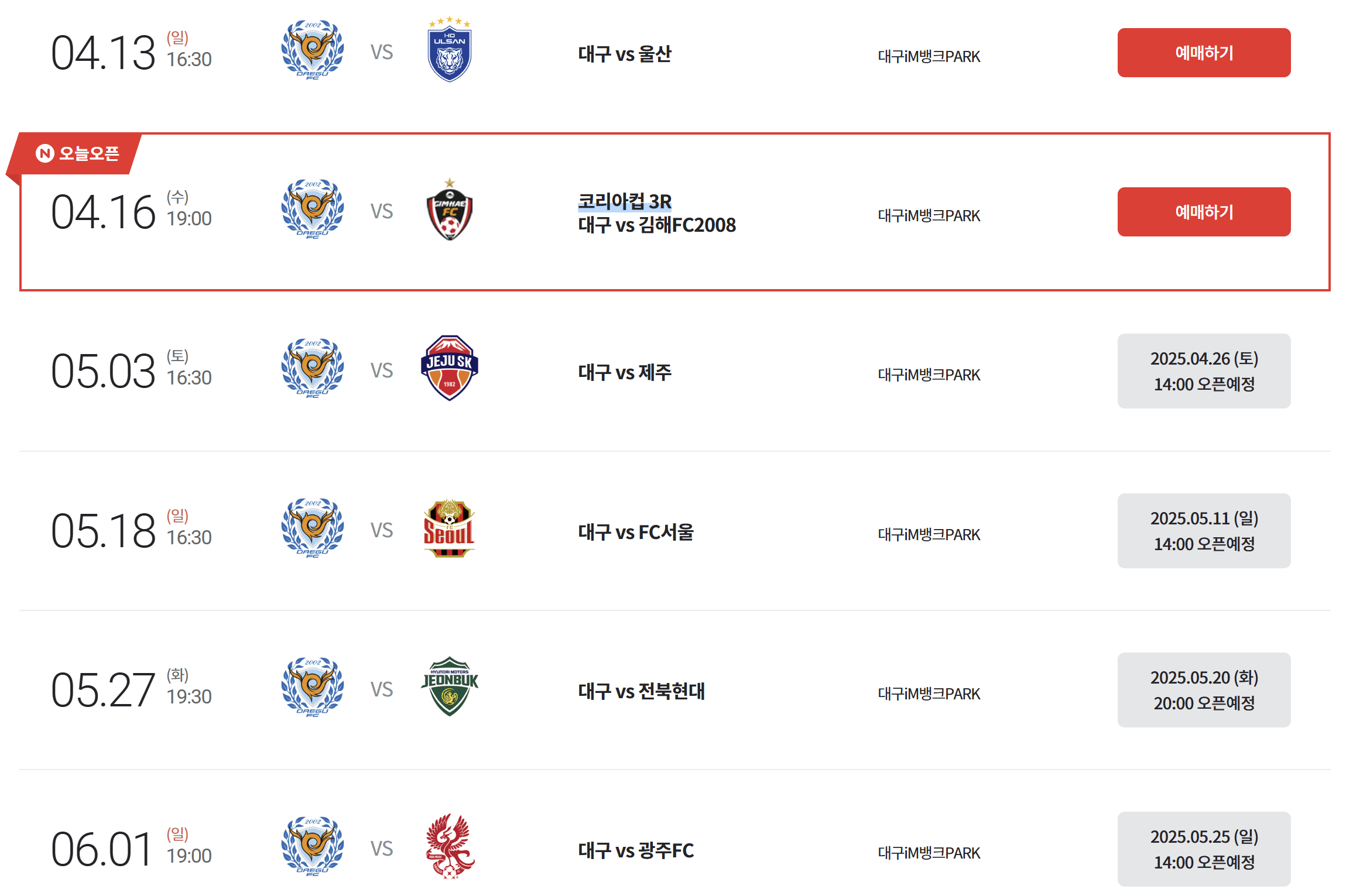 - 경기장소: 대구스타디움